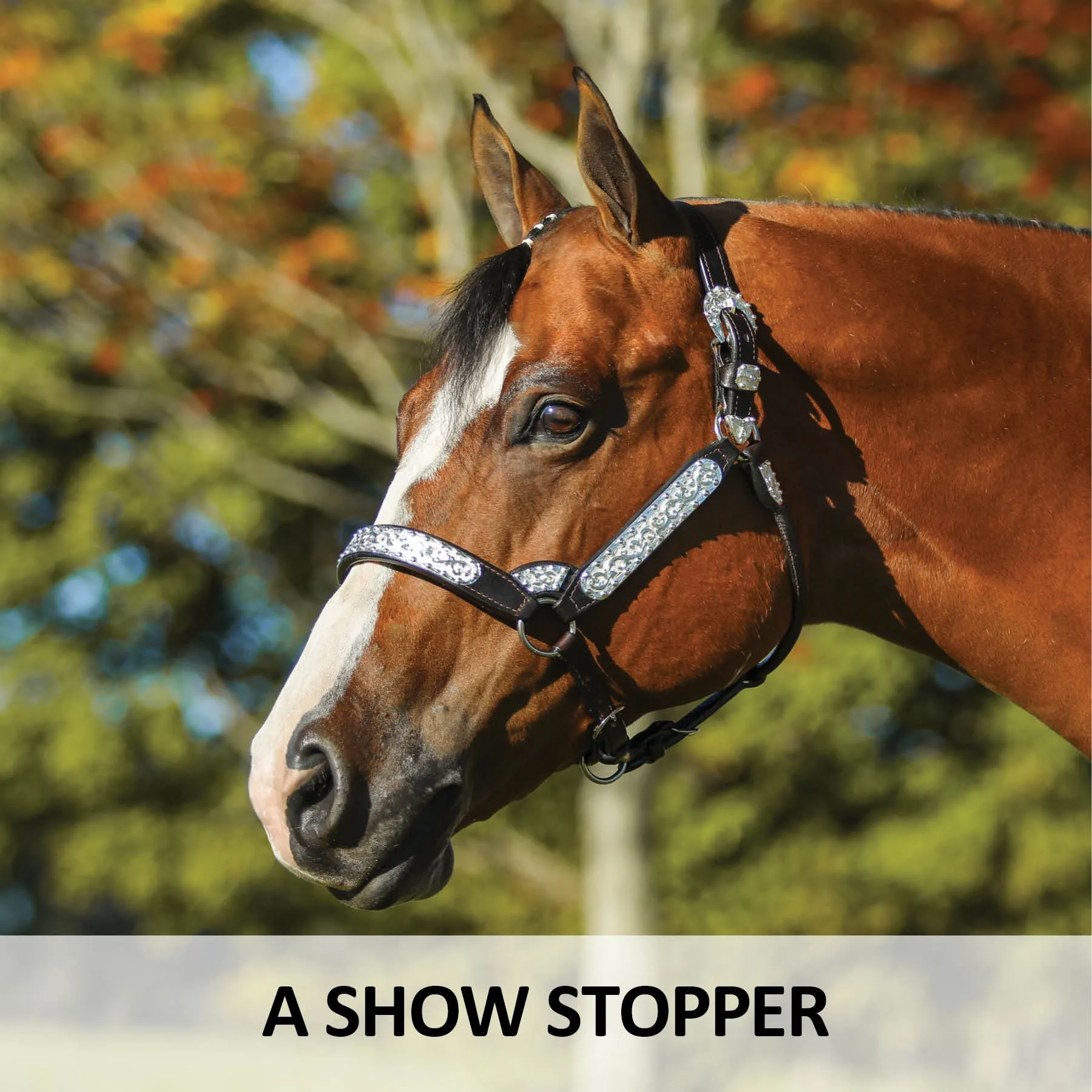 Attract immediate attention with our most popular show halter! Handcrafted from the finest premium heavyweight leather. Hand rubbed and oiled for a beautiful and supple finish with hand engraved silver plating.