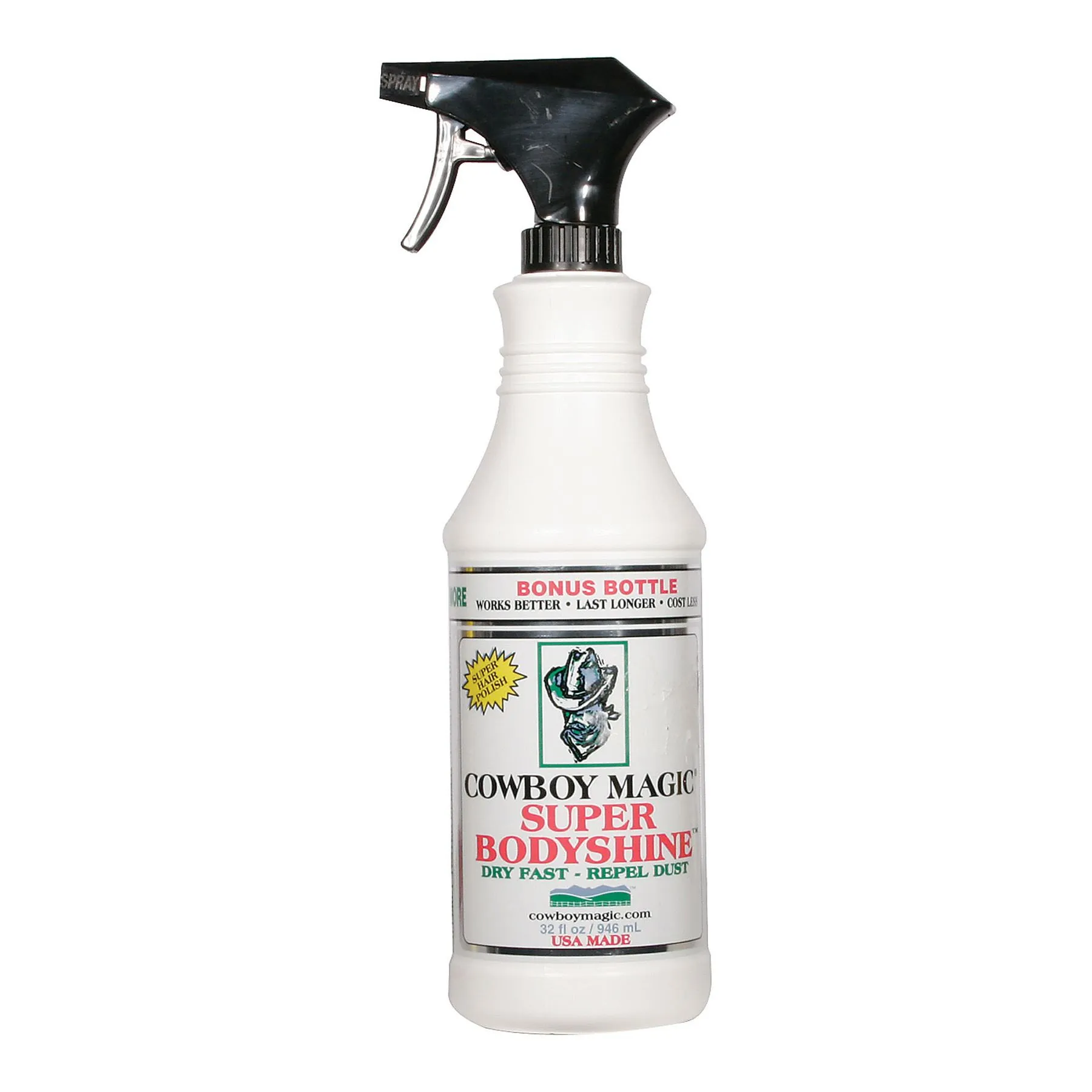 COWBOY MAGIC® SUPER BODYSHINE® is formulated to give hair a super shine. Helps repel show ring dust and dries fast.