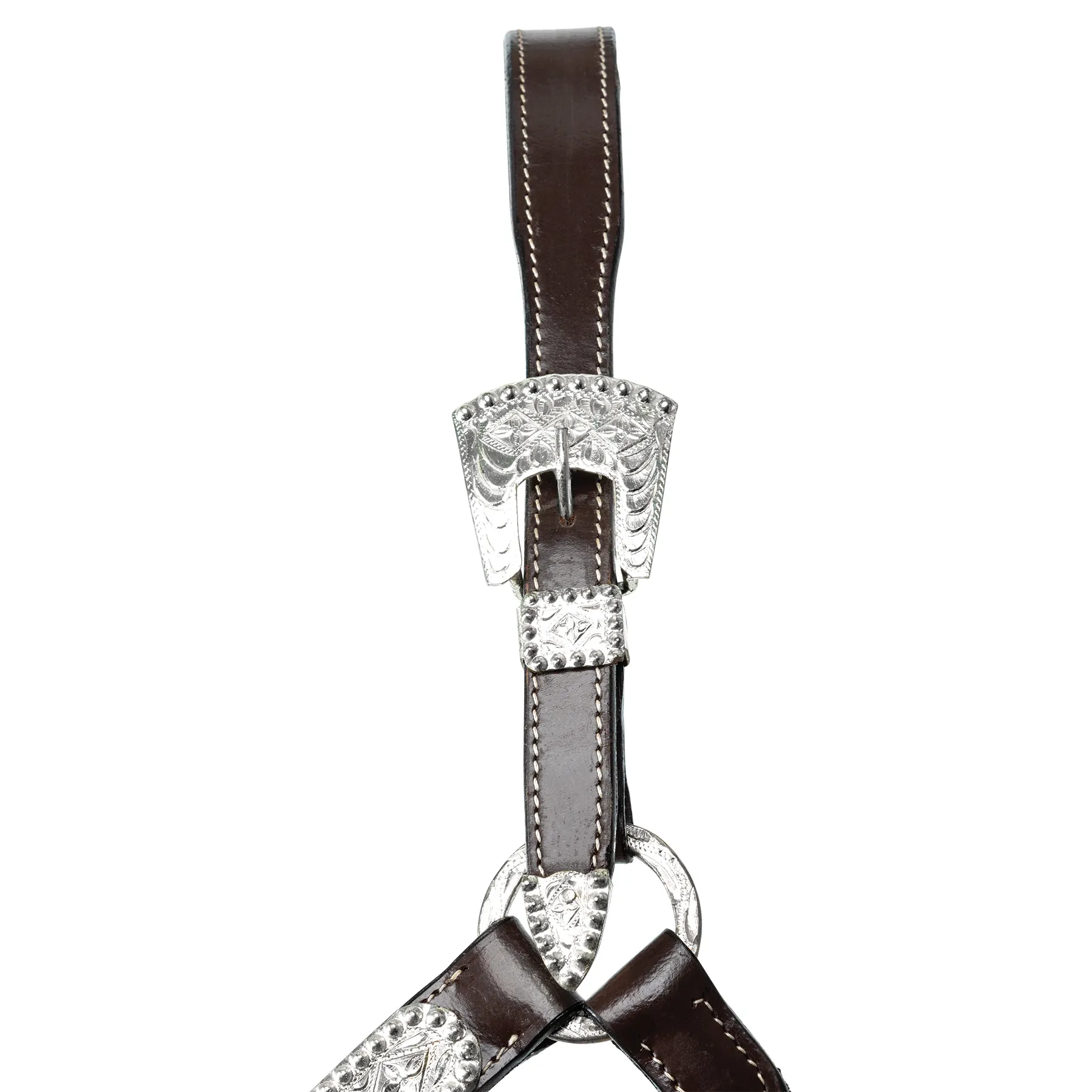 A classic-styled, entry level showmanship halter to get you started in your show career. The Double S Felicity Show Halter with Lead is made from dark oil leather with cream stitching, complimented by the full silver plate detailing on the cheeks and nose, as well as matching buckle, keeper and tip set to finish off the look.
