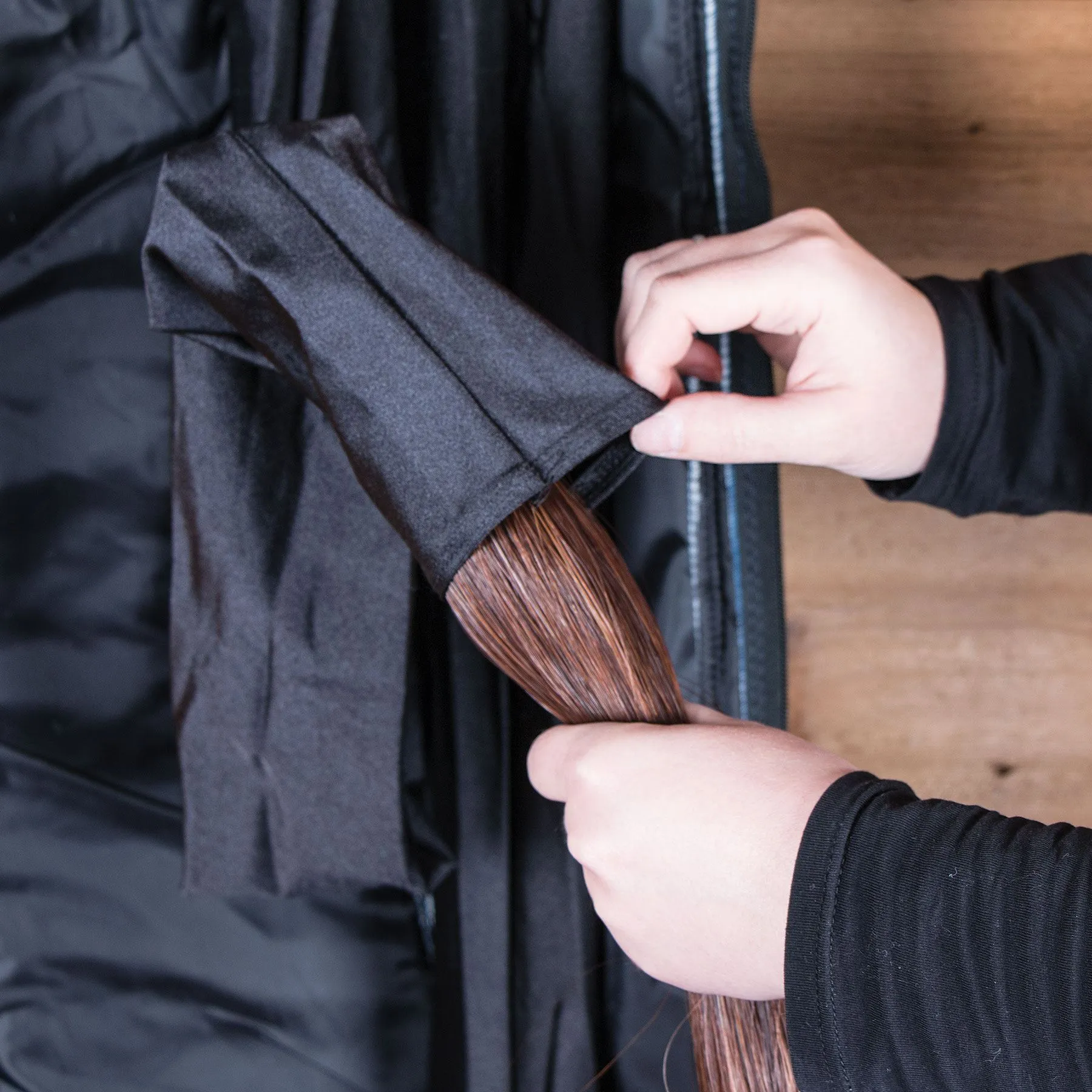 - Side by side soft inner stretchy lycra sleeve keeps tail in shape and tangle-free