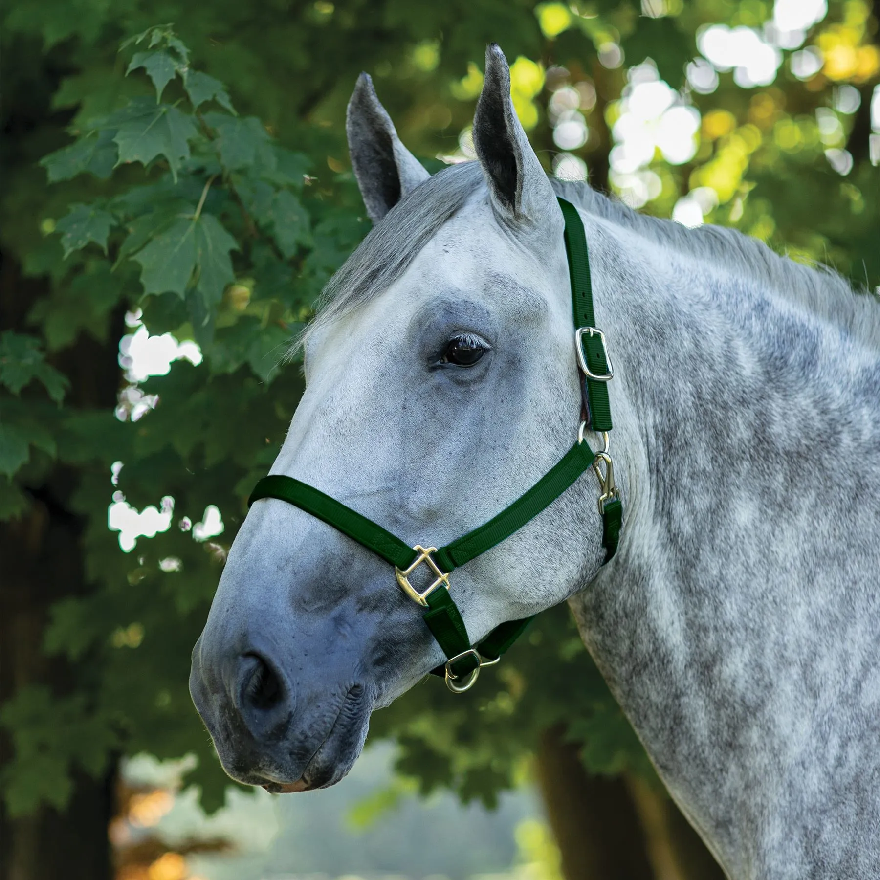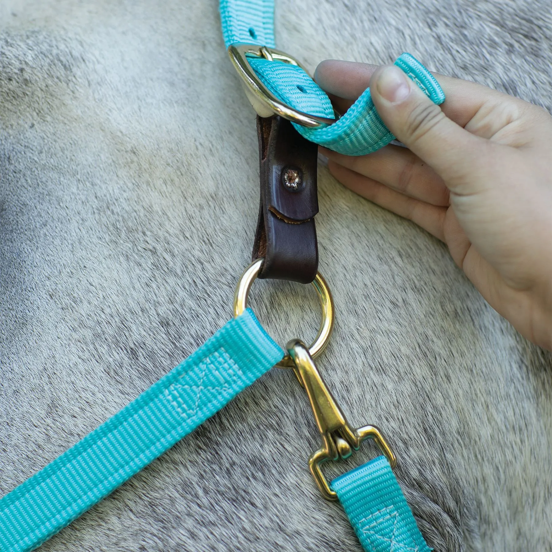 This nylon turnout halter has all the color and durability of our standard draft nylon halter, but with an added bonus of a leather breakaway safety tab to ensure the safety of any draft that wears it.