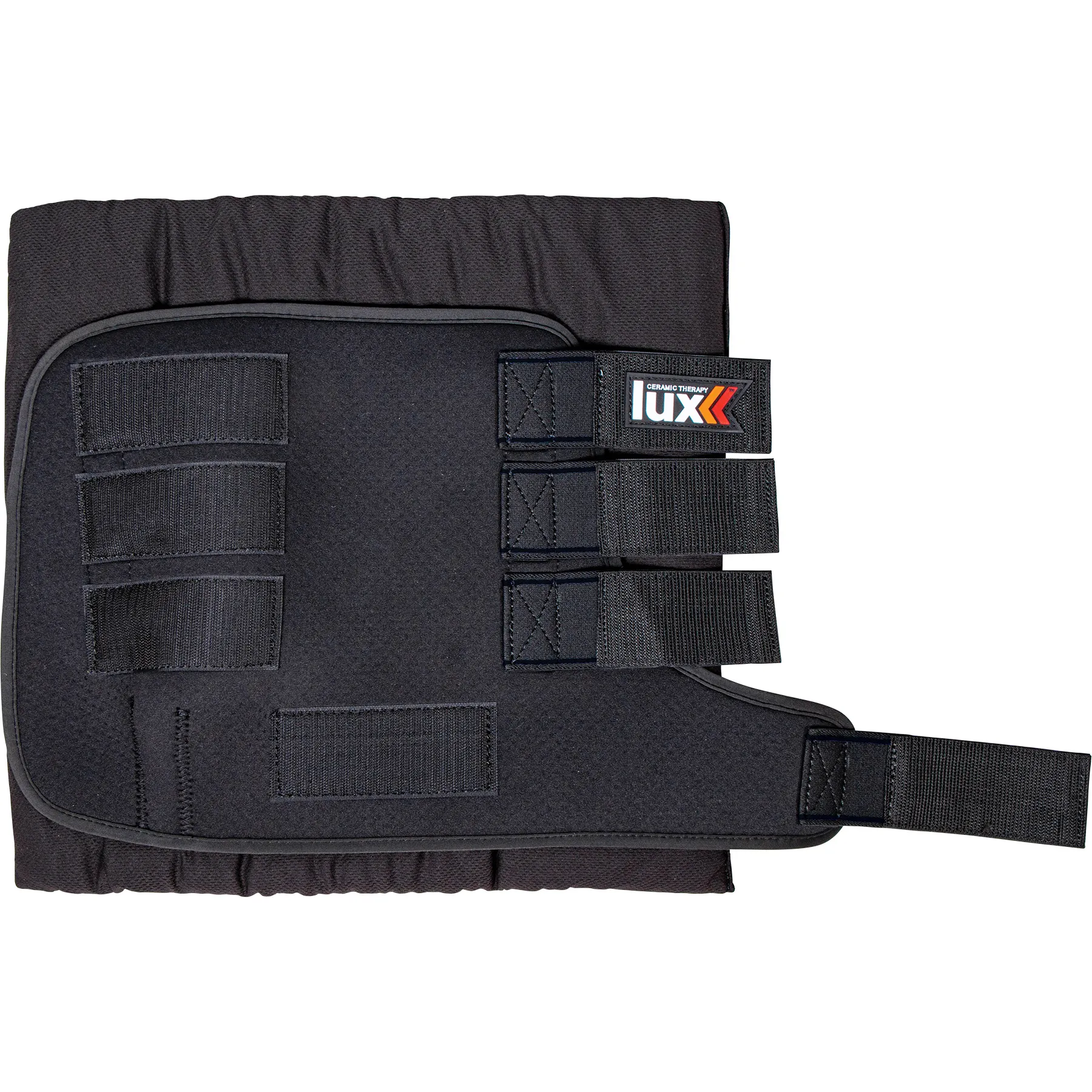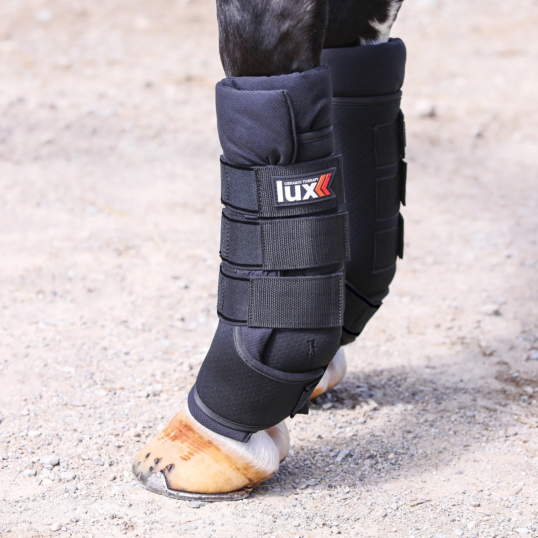 Easy-to-use Lux Ceramic Therapy® Quick Wraps for horses can be applied before and after exercise or training to speed up warm-up and recovery of the horse’s legs. Ceramic Therapy is a cost-effective, powerful rehab, recovery, and preventative maintenance solution. The ceramic fibers in Lux® reflect heat into the body as far infrared rays (FIR). FIR expands blood vessels and increases circulation, allowing the body to fuel working muscles and repair damage more efficiently. The added Tekno Dri® material keeps the legs cooler and wicks away moisture from their legs. These wraps will break down scar tissue and reduce wind puffs without liniment or poultice, making them great for reducing inflammation caused by cellulitis.