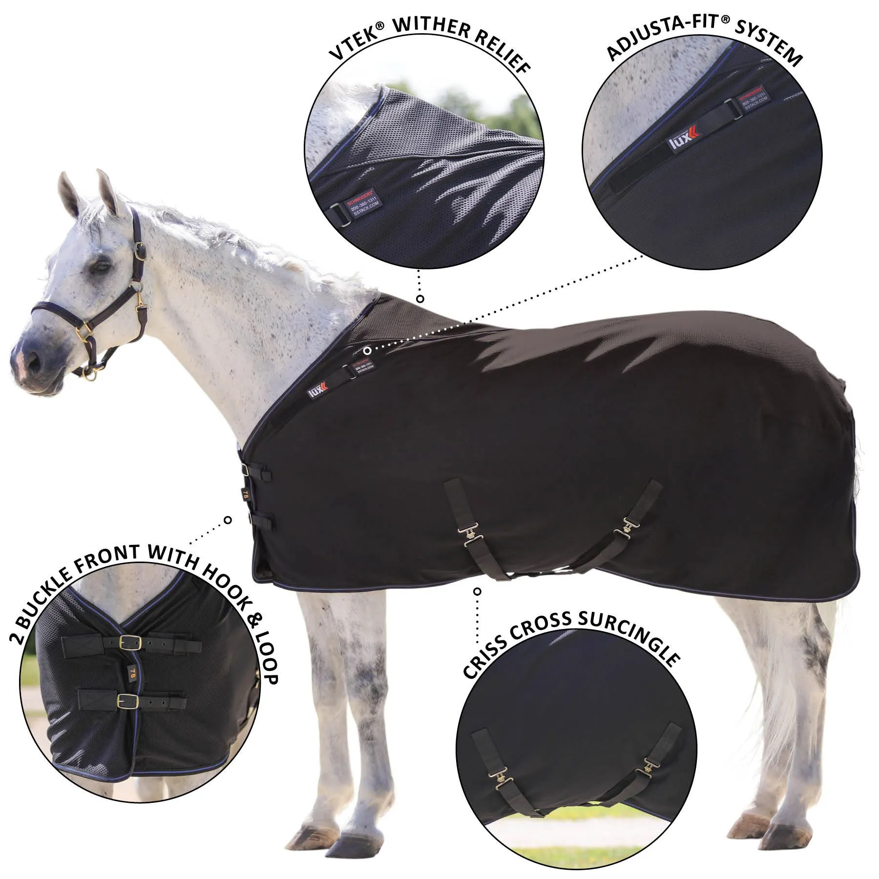 Lux Ceramic Therapy® VTEK® Mesh Sheet can be used by itself or as a blanket liner. Eases soreness in the shoulders, scapula, withers, and hips. Great for sensitive-backed and older, arthritic horses. Apply sheet pre-performance, between classes, post-performance, or while trailering.