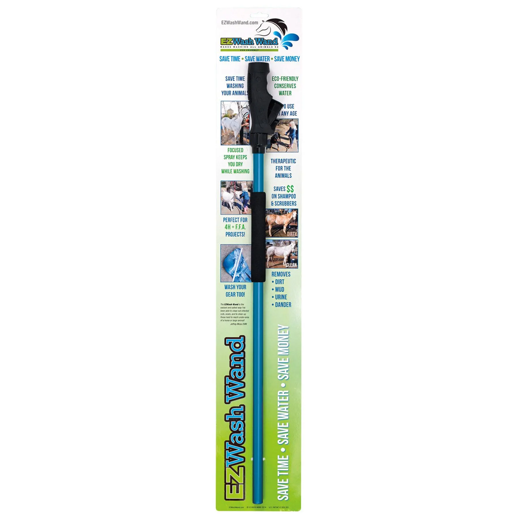 This handy wand attaches to a standard garden hose and has a specialized perforated aluminum nozzle that produces a strong stream of spray to quickly strip away dirt and excess shampoo. This wand covers a much wider surface area and is perfect for those hard to reach places while the user stays dry. The squeeze trigger handle can be locked for continuous water flow or simply squeeze when needing to conserve water.