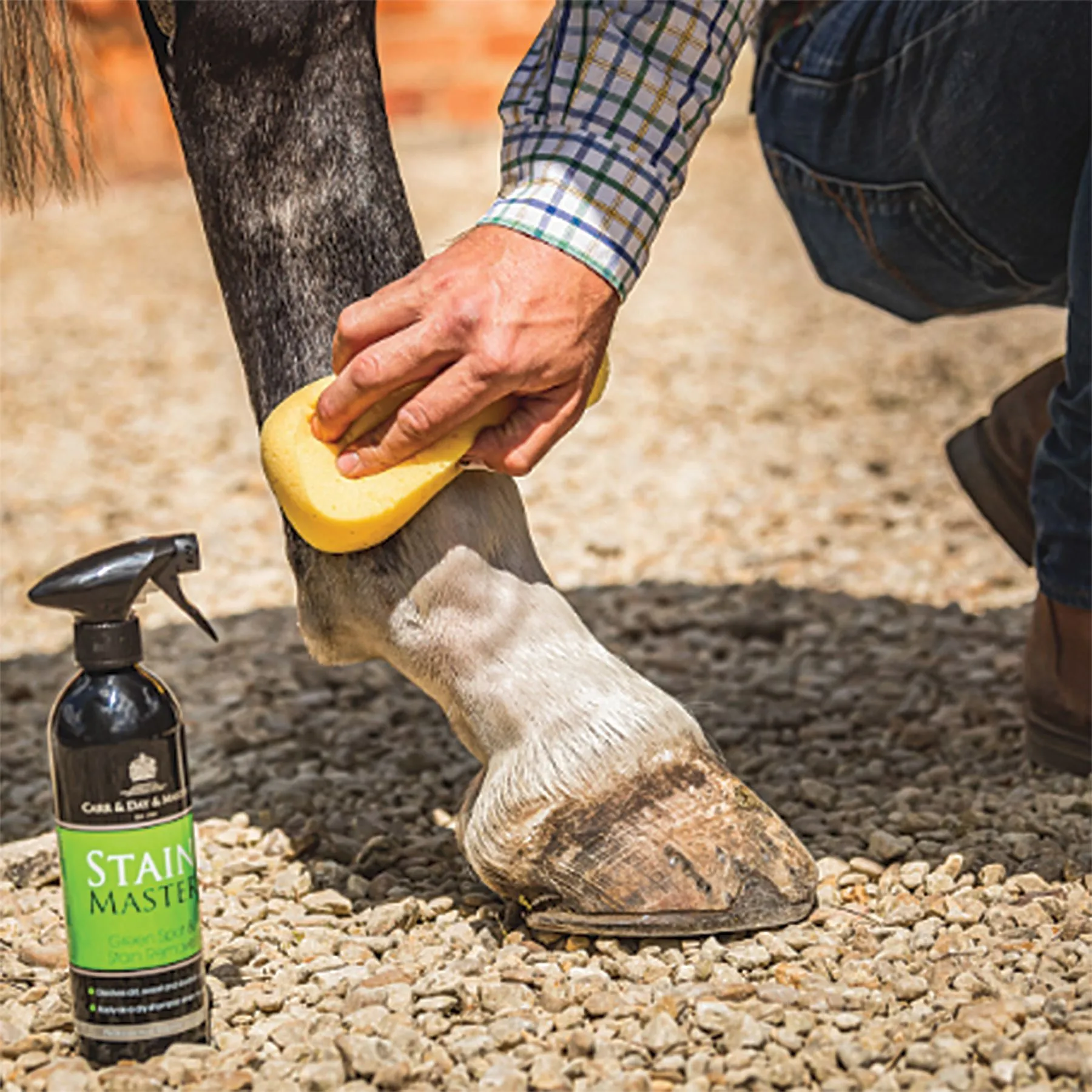 - Ideal for removing dirt and manure stains with no need to rinse. Fantastic for last minute show touch ups as an ‘on the spot’ brightener for white markings. Stain Master can also be used as a dry shampoo when it’s too cold to bath.